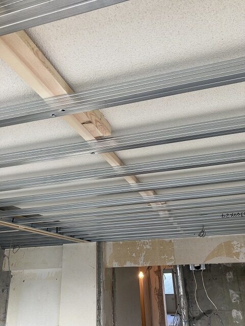 既存の天井下地を使うリフォームの場合、穴をあけたら下地の位置だった!ということもあり、そんな時はバランスを見ながら付近の下地のない場所に開けなおします。